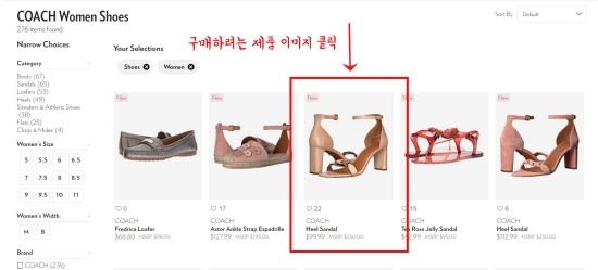 1. 해외쇼핑몰 6pm.com에서 구매하고자 하는 Coach신발이 있으면
