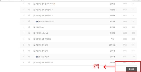 게시판에 견적문의로 내용이 등록이 됩니다.