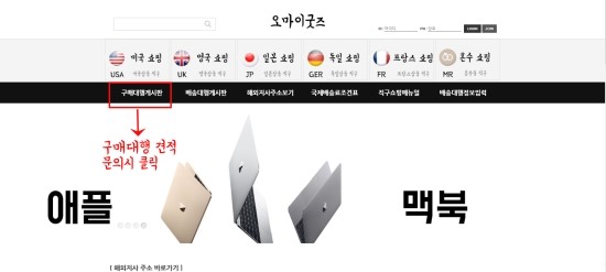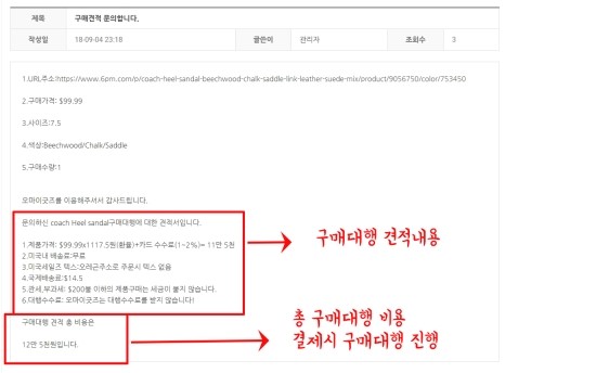 4. 구매대행게시판 코너에서 구매대행 견적의뢰를 하기 위하여 하단에