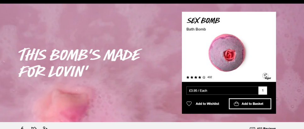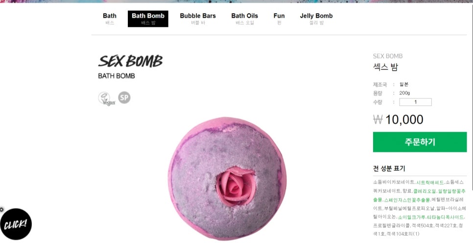 우리나라 홈페이지도 들어가보면 잘 꾸며놨어요. 요새 러쉬의 베스밤 품목중에 섹스 밤(SEX BOMB)이라는 것이 판매량 1순위 더라고요.
