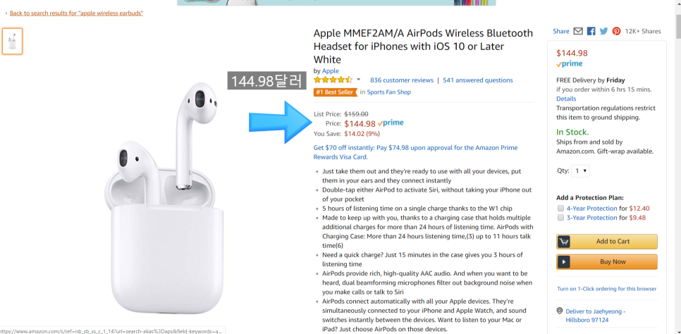 과연 애플의 고향 미국에서는 에어팟을 얼마에 파는지 알아볼까요?